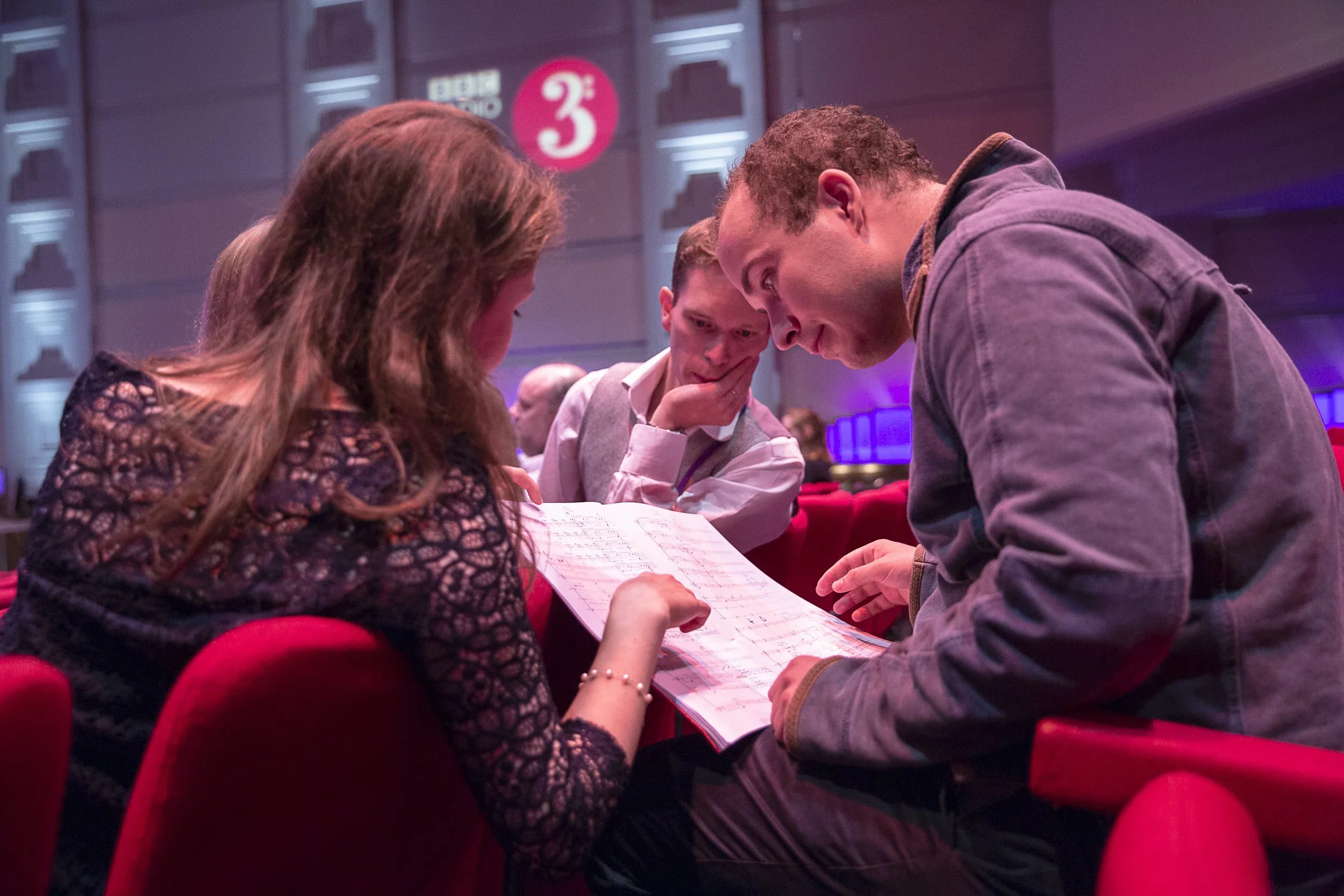 Rehearsing ‘Dancing with Playford’ with George Vass and the Presteigne Festival Orchestra, 2024